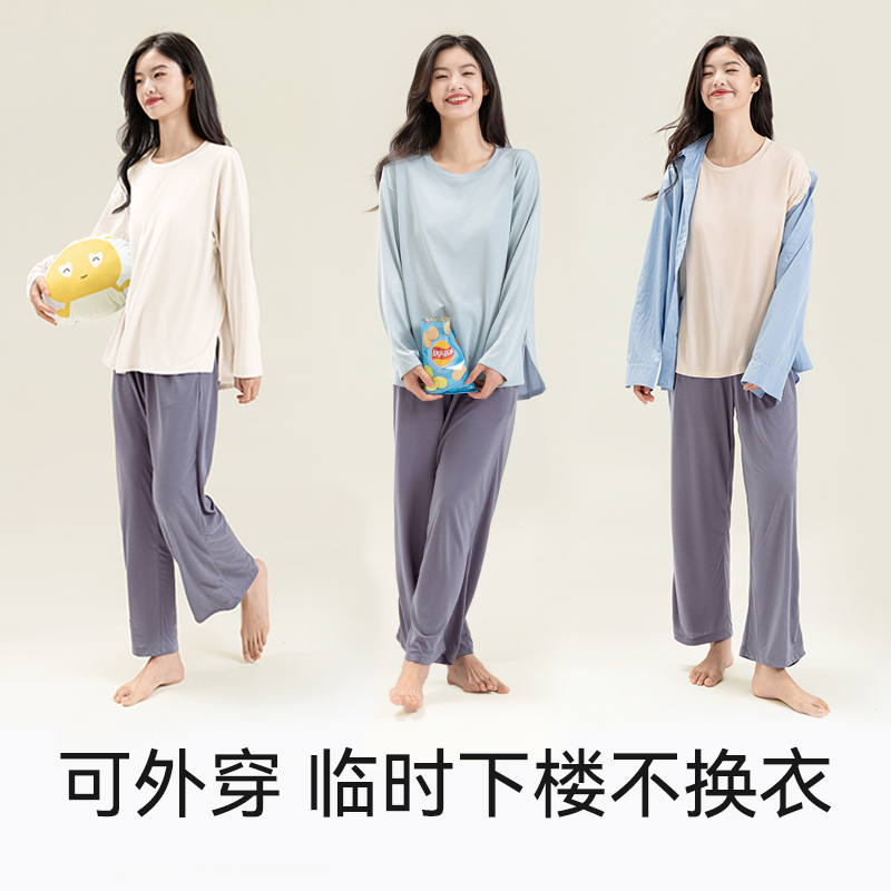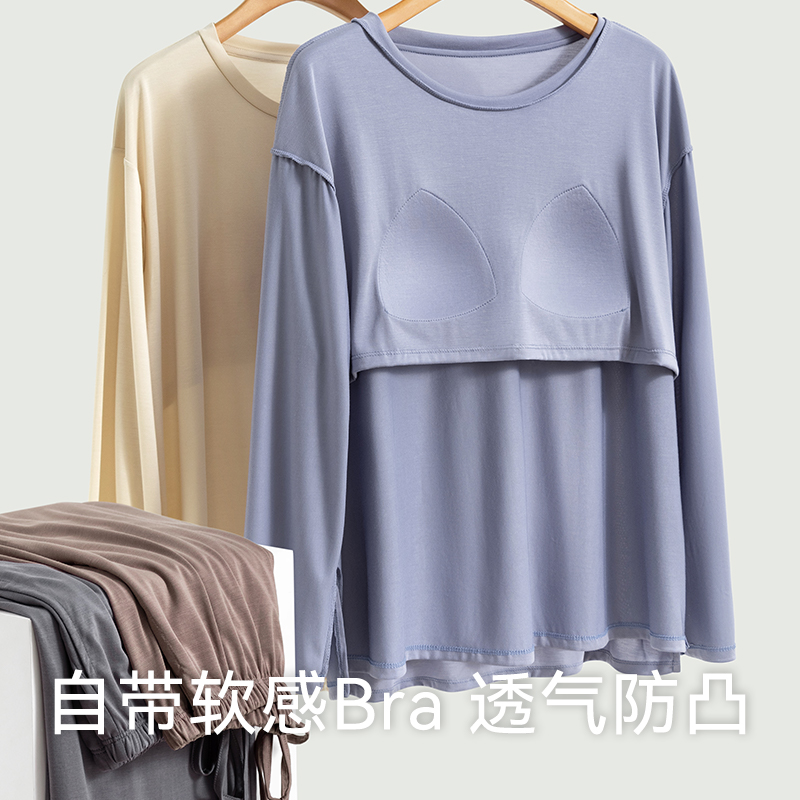 防湿水2025新 长裤 内茵睡衣女春秋带胸垫家居服套装 可外穿情侣长袖