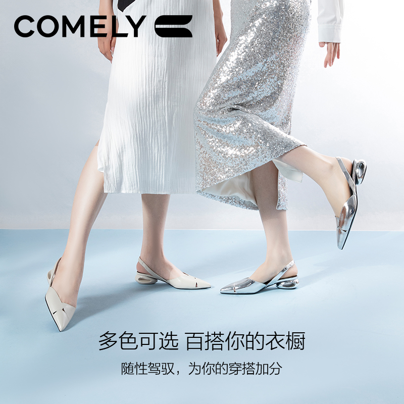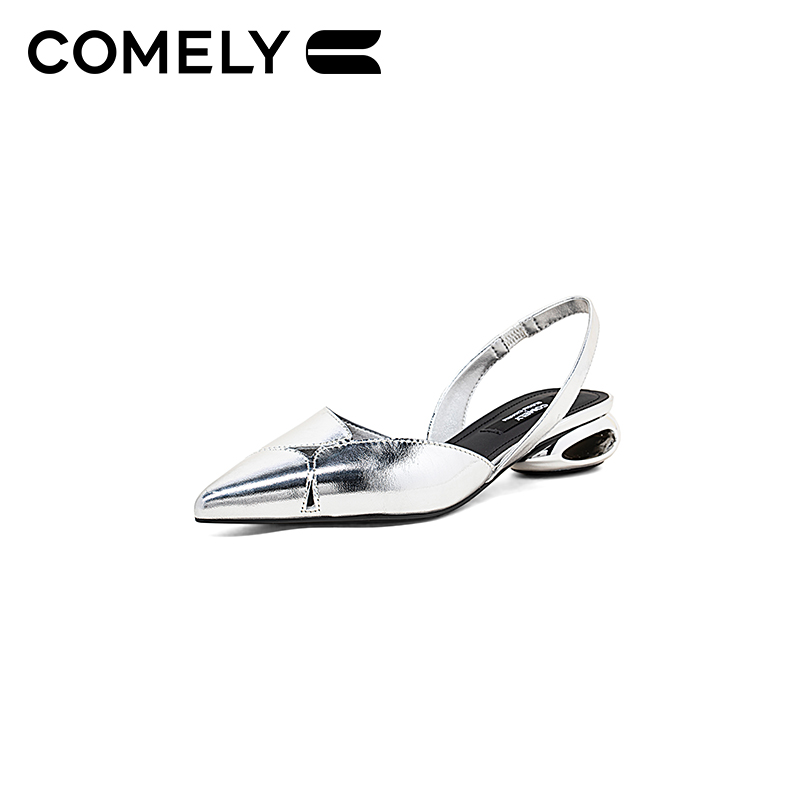单鞋 康莉商场同款 真皮镂空尖头时尚 女2025夏季 粗跟包头凉鞋
