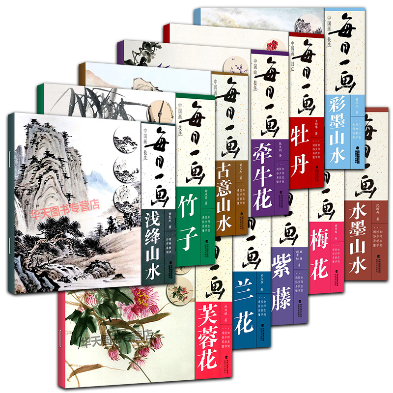 竹子 单册可选 梅花 芙蓉花 浅绛山水 牡丹 水墨山水 每日一画中国画技法紫藤 彩墨山水零基础入门临摹 兰花 古意山水 牵牛花