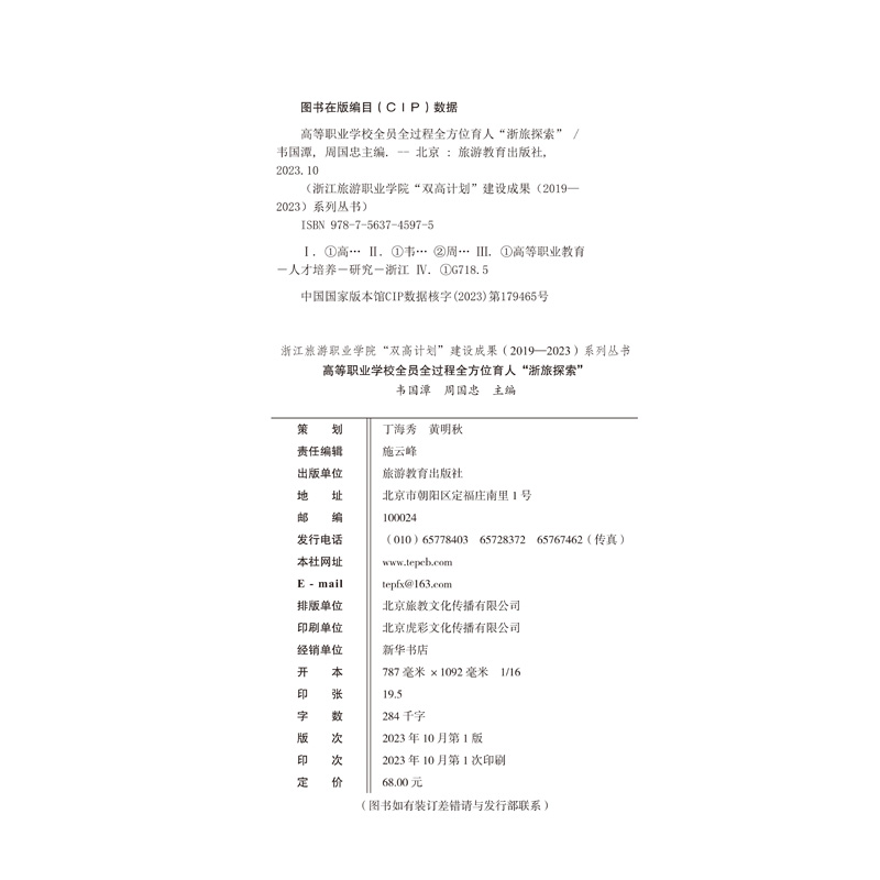 社 9787563745975中国旅游教育研究文丛韦国潭主编旅游教育出版 高等职业学校全员全过程全方位育人 浙旅探索