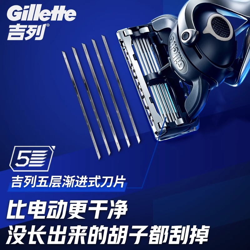 吉列致顺引力盒剃须刀替换刀头手动男士 5层刀片刮刀刮胡刀非吉利
