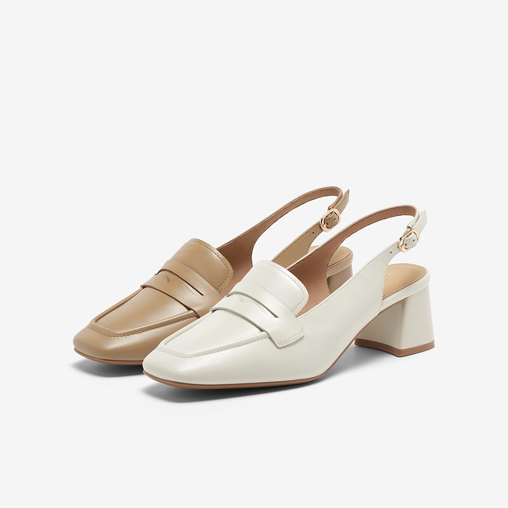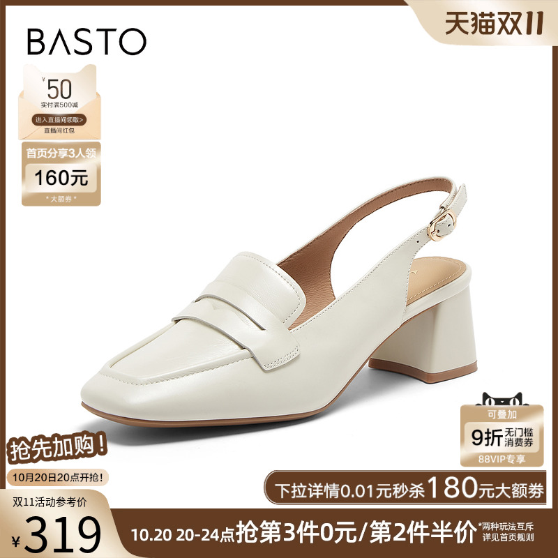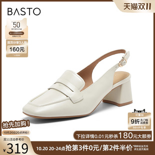 方头粗跟包头后空女乐福凉鞋 时尚 RJF49BH4 商场新款 百思图夏季