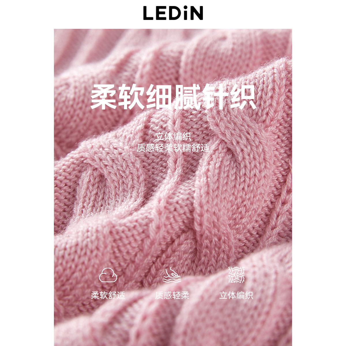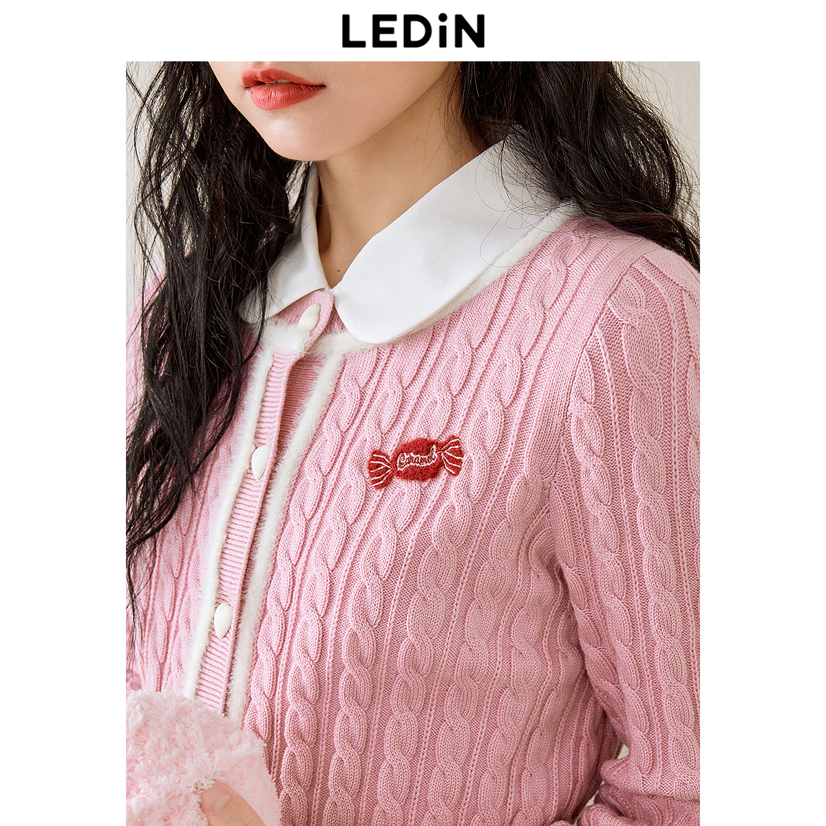 粉色绞花甜美内搭老钱风针织开衫 乐町正肩圆领毛针织衫 春新款
