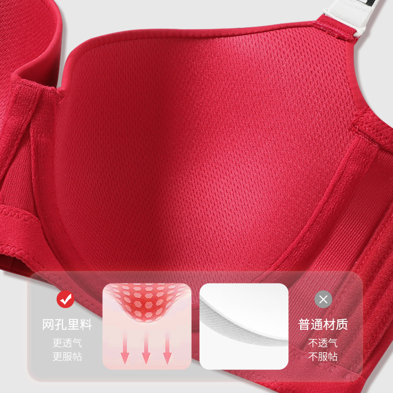 本命年聚拢大胸显小文胸薄 红色无痕内衣套装 新年元 旦内衣礼盒大码