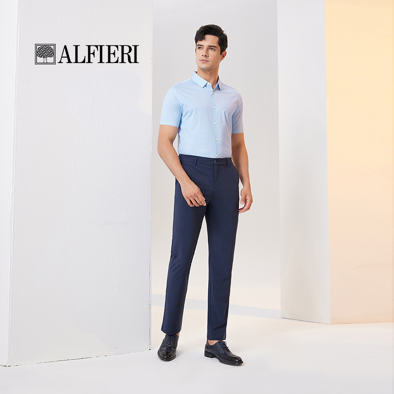 短袖 艾法利 舒适简约休闲透气翻领格纹衬衫 新品 T恤 2024夏款