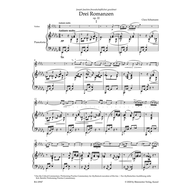 Klavier BA10947 Clara für Violine Romanzen Schumann Drei op22 骑熊士原版 und 克拉拉舒曼为小提琴和钢琴而作三首浪漫曲op22