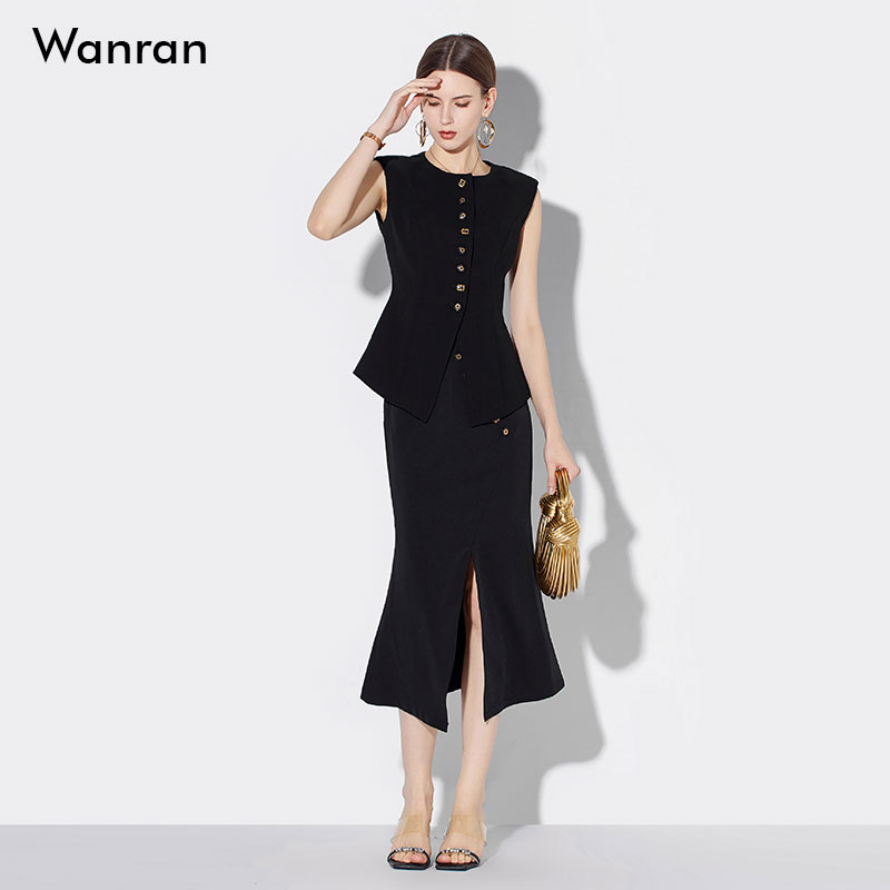 马甲不规则开叉鱼尾半裙职业套装 2025夏季 饰显瘦无袖 气质OL装 新款