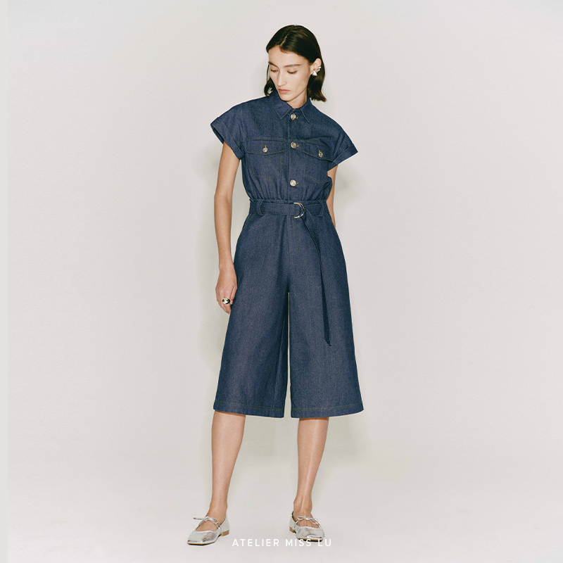 造型口袋收腰连体七分裤 2024春夏新款 晴空海浪 AtelierMissLu