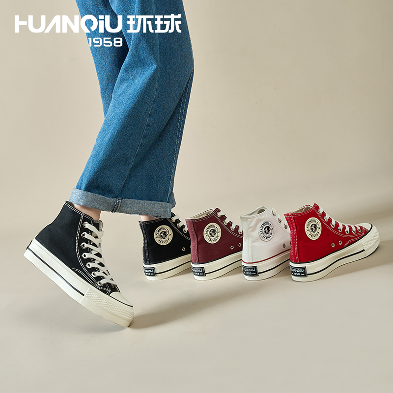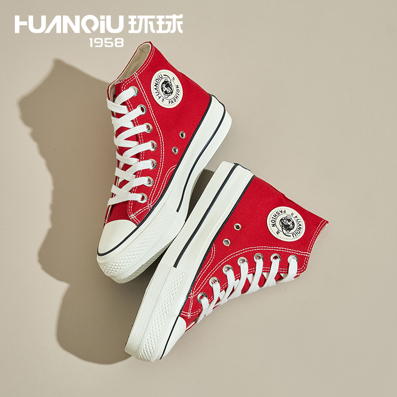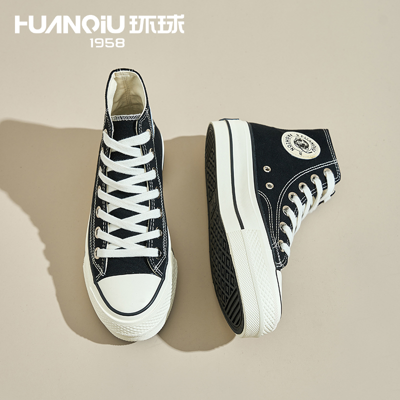 厚底奶fufu港风休闲板鞋 透气百搭板鞋 女2025春新款 环球高帮帆布鞋