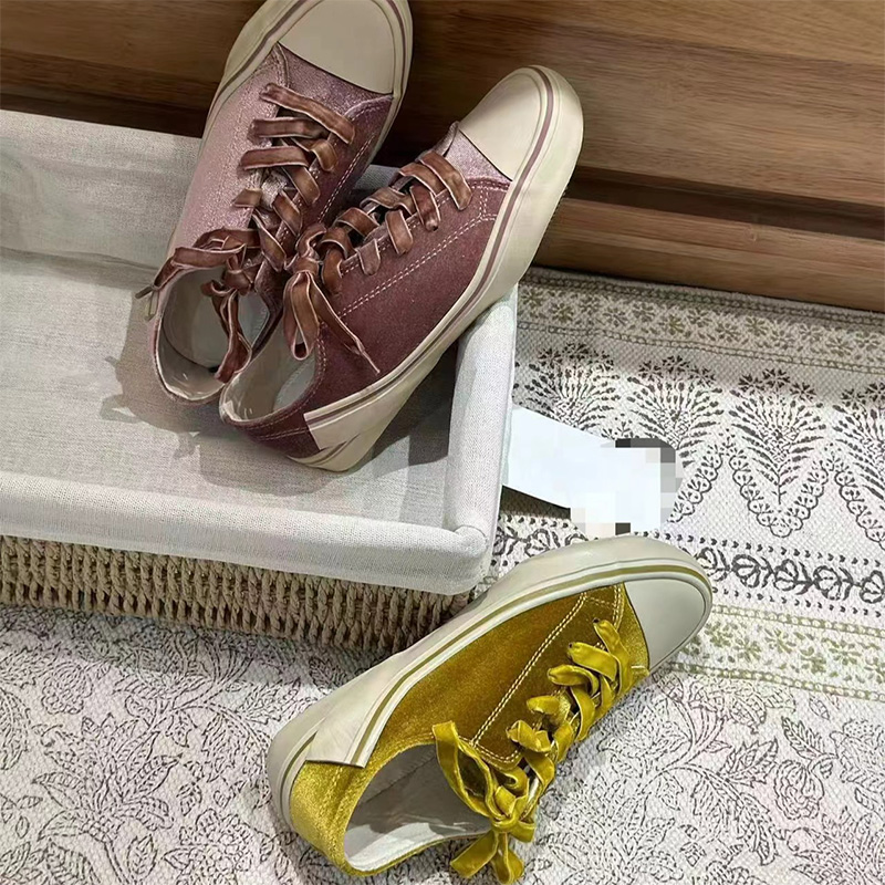 板鞋 Mantova曼托瓦新款 潮流系带复古亮色休闲鞋 丝绒帆布鞋 女 法式