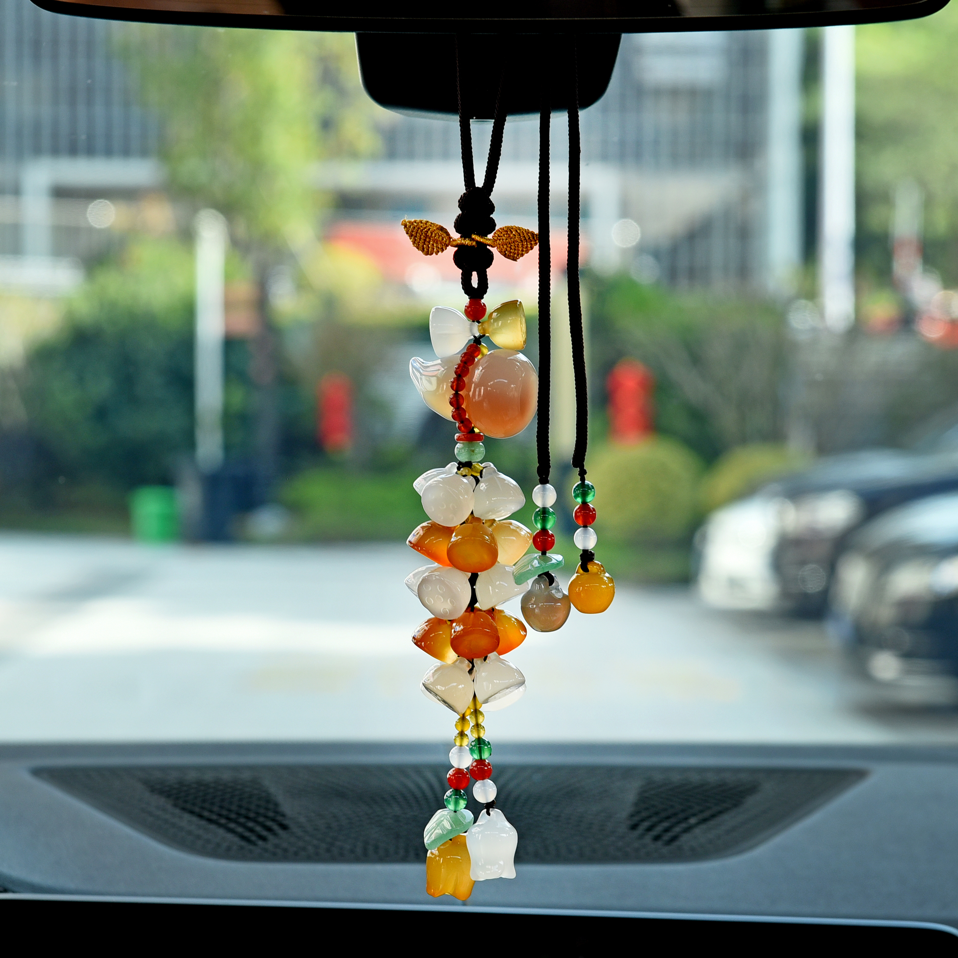 汽车挂件女高端玉石葫芦车内后视镜吊坠新款 饰品男 莲蓬平安车载装