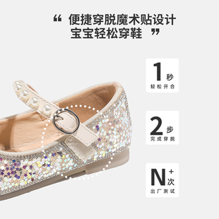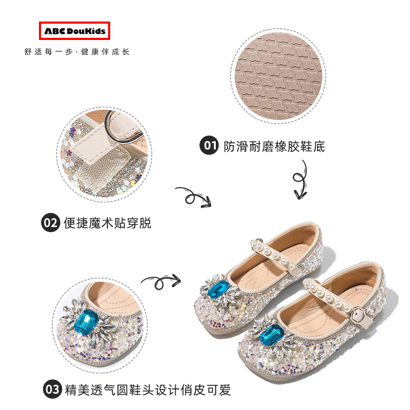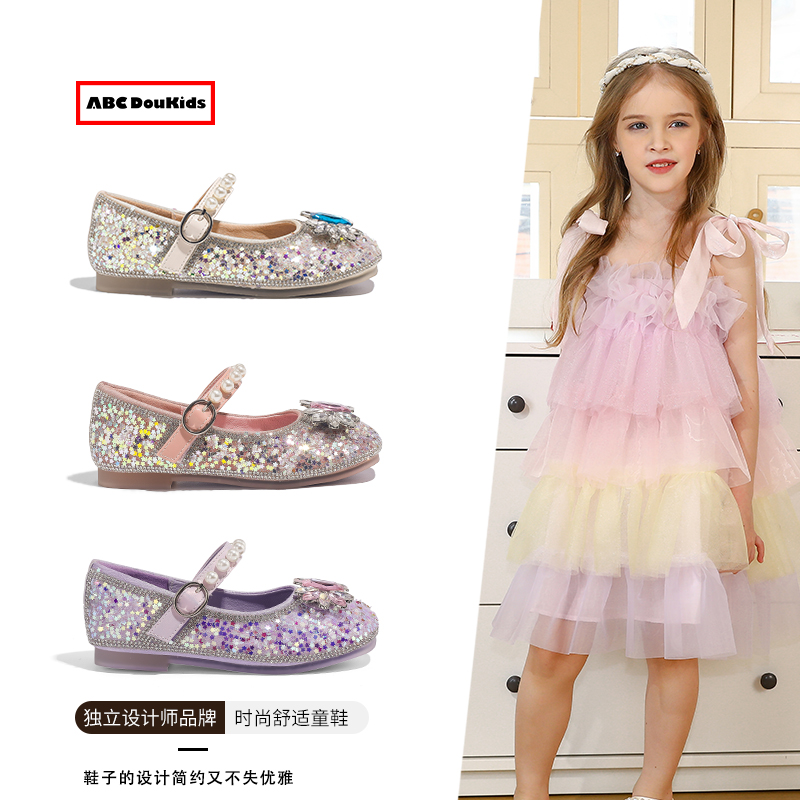 宝宝单鞋 ABCdoukids女童水晶公主鞋 儿童水钻珍珠皮鞋 新款 2025春季