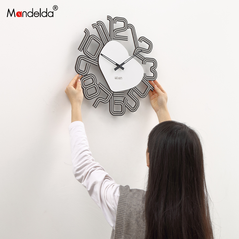 Mandelda免打孔轻奢艺术钟表客厅家用创意挂钟餐厅简约时钟装 饰墙