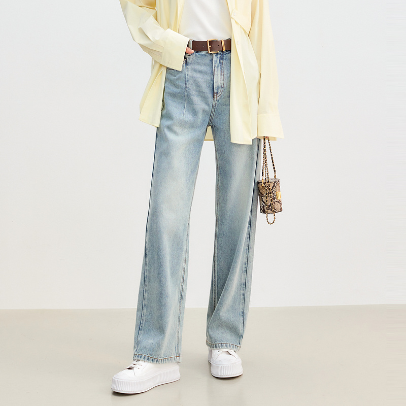 阔腿直筒裤 商场同款 女高腰爆款 仿佛2025夏复古浅色牛仔裤