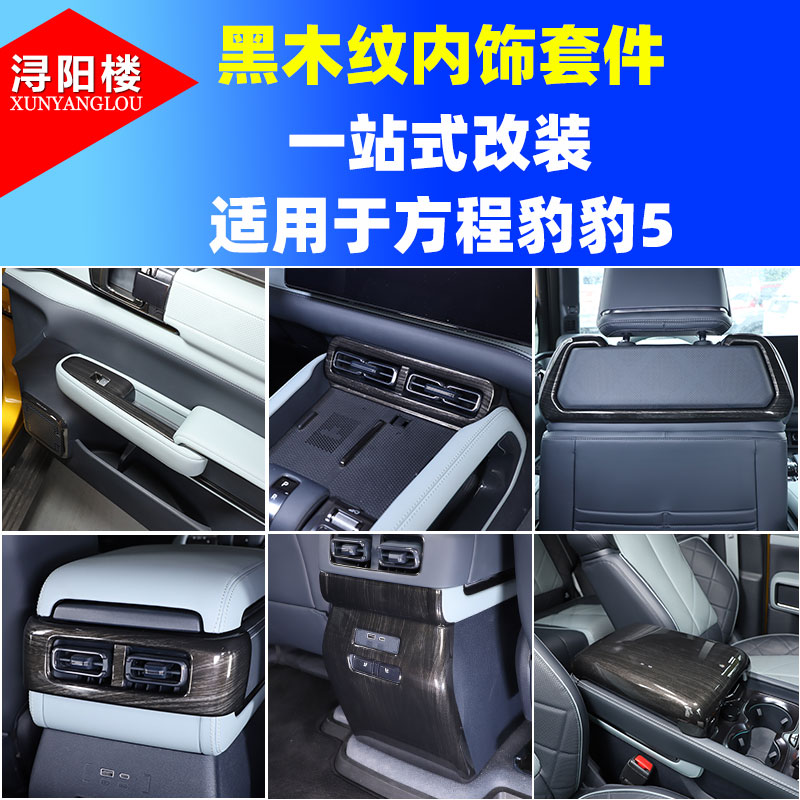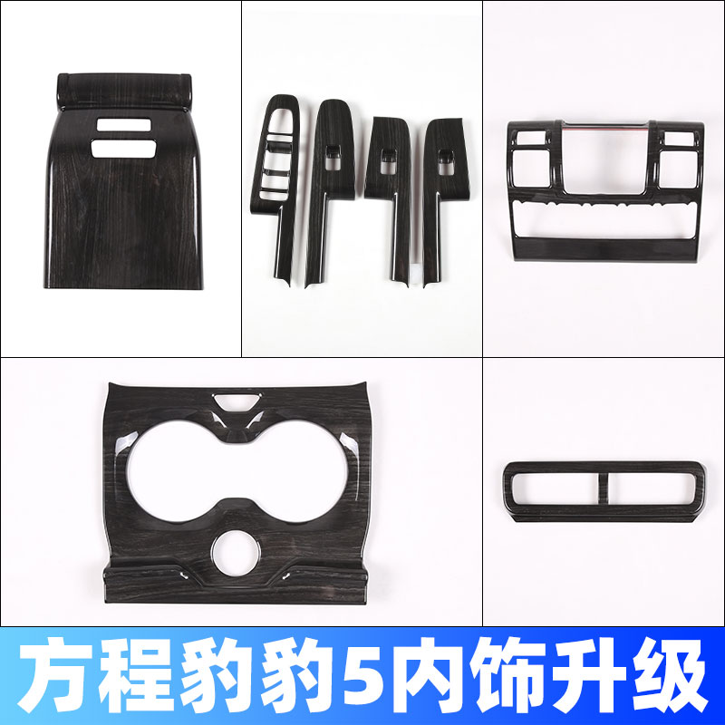 件 方程豹豹5方向盘亮片中控排队框黑木纹内饰贴改装 适用于23 24款