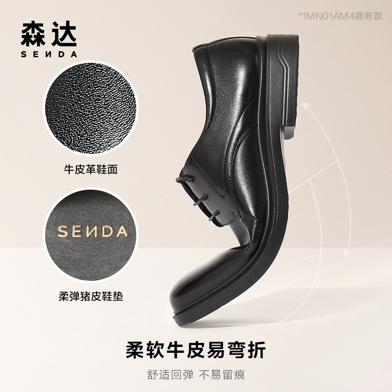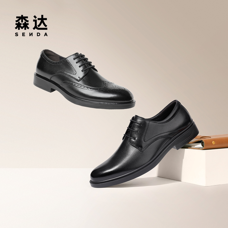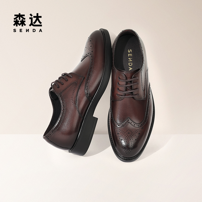 皮鞋 商务通勤德比正装 1MP01AM4 布洛克雕花休闲男复古时尚 森达皮鞋