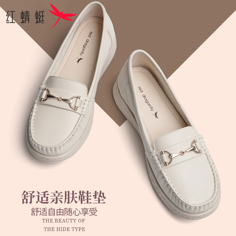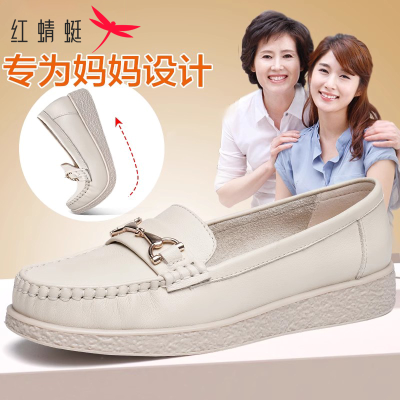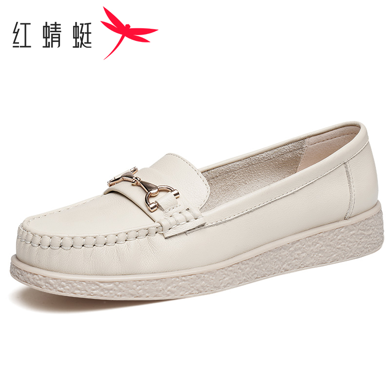 浅口小皮鞋 平底乐福鞋 真皮舒适妈妈鞋 休闲女士单鞋 时尚 红蜻蜓女鞋