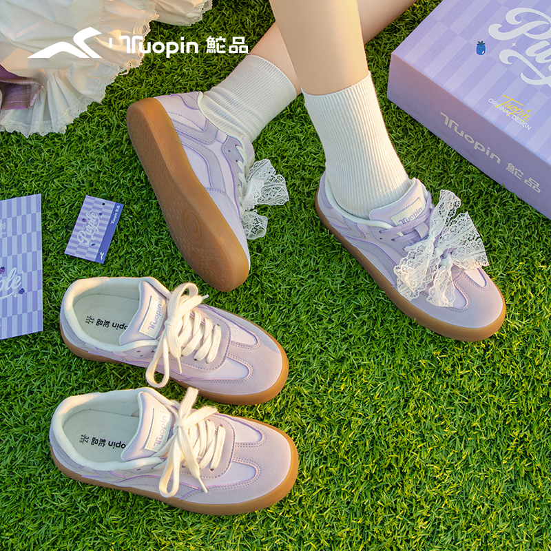 芭蕾运动板鞋 鮀品蕾丝德训鞋 配裙子紫色单鞋 百搭小白鞋 女秋冬新款