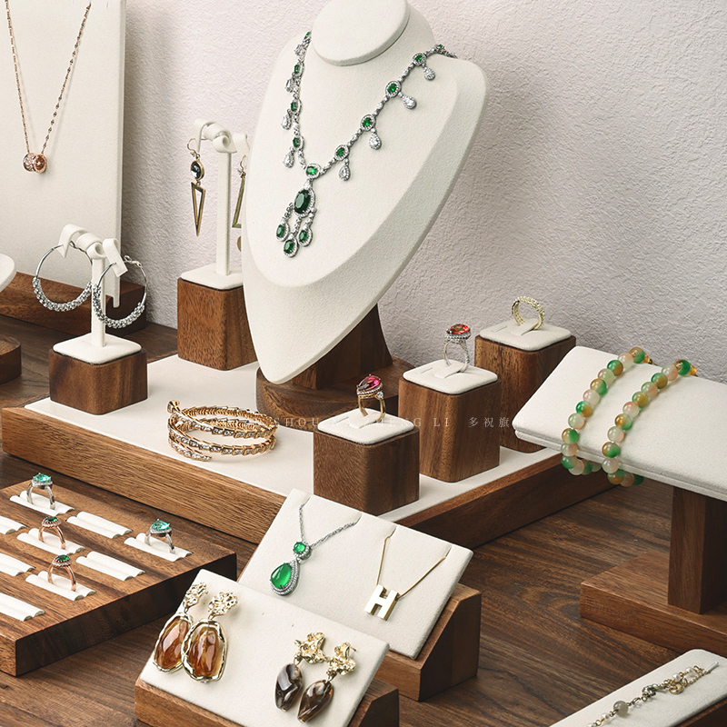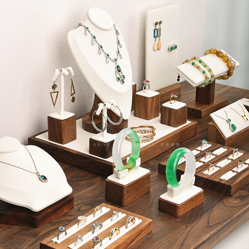胡桃木首饰架实木珠宝展示道具戒指项链耳环收纳架珠宝饰品首饰盘
