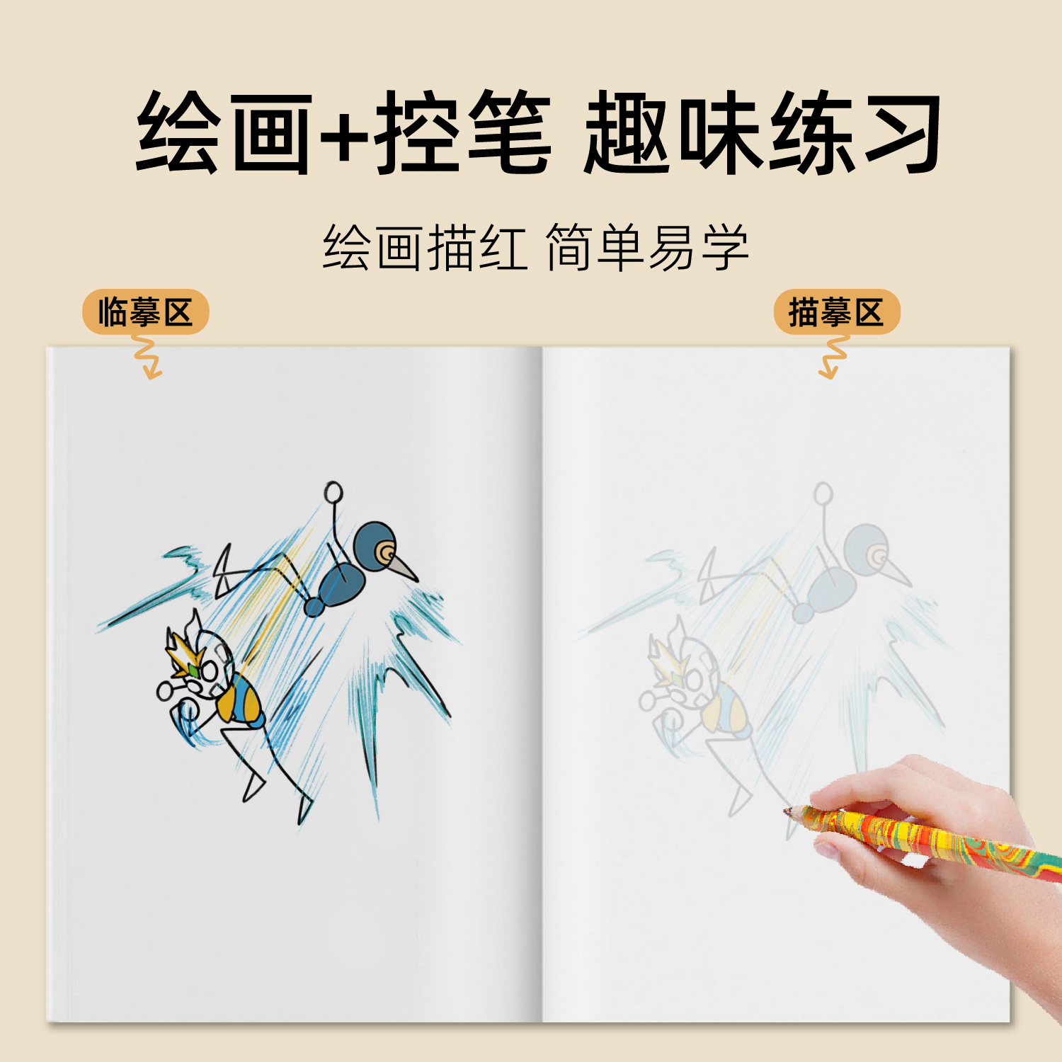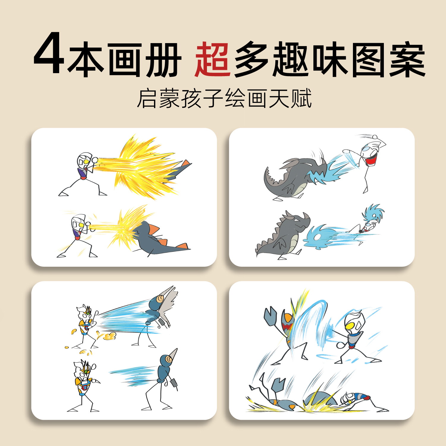 火柴人奥特曼格斗画画本描摹本元 素画描本绘画教程书描绘图画儿童临摹简笔画涂鸦漫画涂色绘画幼儿园画本
