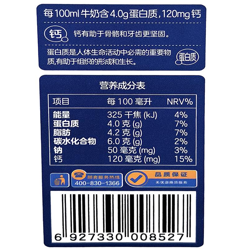 蒙牛全脂营养早餐纯牛奶优质蛋白100%生牛乳口感醇厚