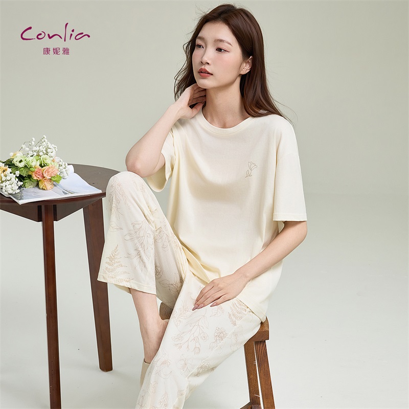 纯棉2025新款 薄款 短袖 家居服套装 圆领舒适 长裤 康妮雅睡衣女夏季