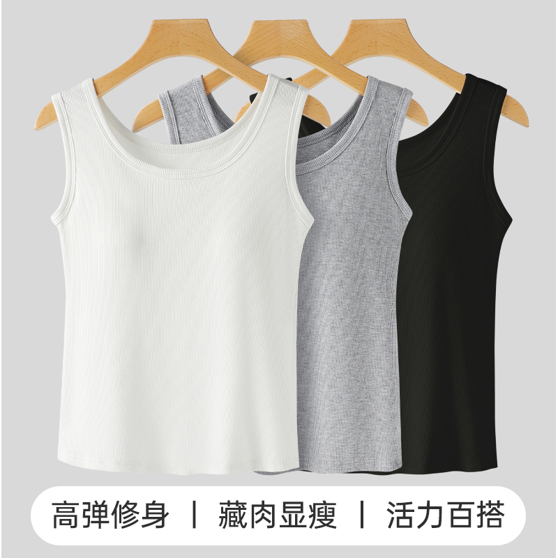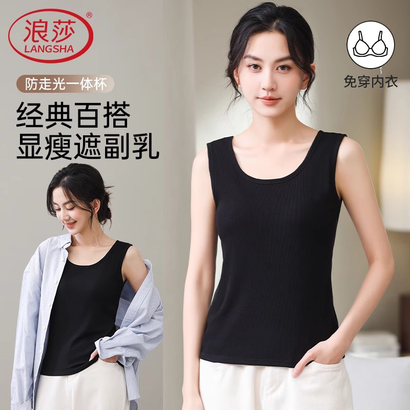 白色上衣 美背抹胸无袖 浪莎吊带背心女带胸垫内搭打底夏季 外穿新款