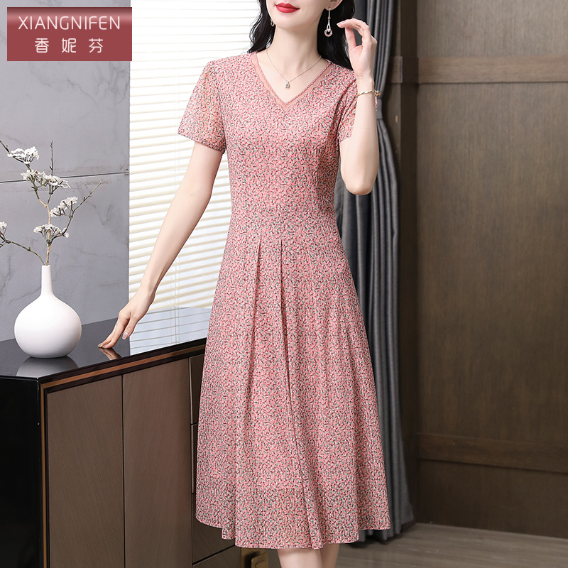 气质职业修身 新款 中长裙01790 连衣裙女2025夏季 罗衣知性通勤无袖