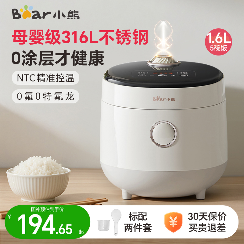 政府补贴小熊0涂层迷你电饭煲1到2人小型316L不锈钢小电饭煲正品
