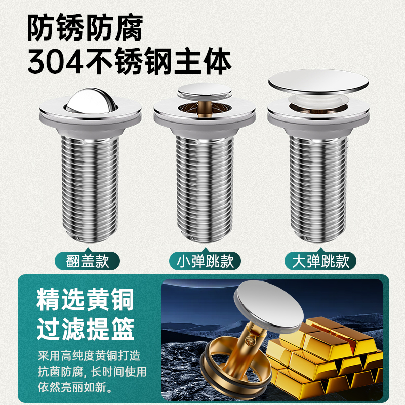 卫生间洗手盆漏水塞过滤防臭洗脸盆弹跳芯下水器配件按压式 面盆用