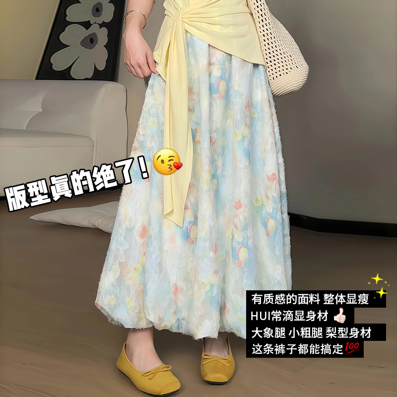 莫奈花园花苞裙女夏日新款 超好看多巴胺碎花半身裙蓬蓬a字灯笼裙