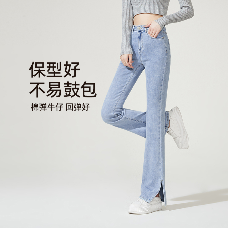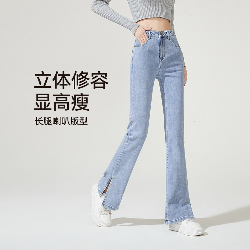 女士牛仔裤 黑色显瘦喇叭牛仔裤 2025年秋季 复古修身 新款 热风微喇裤