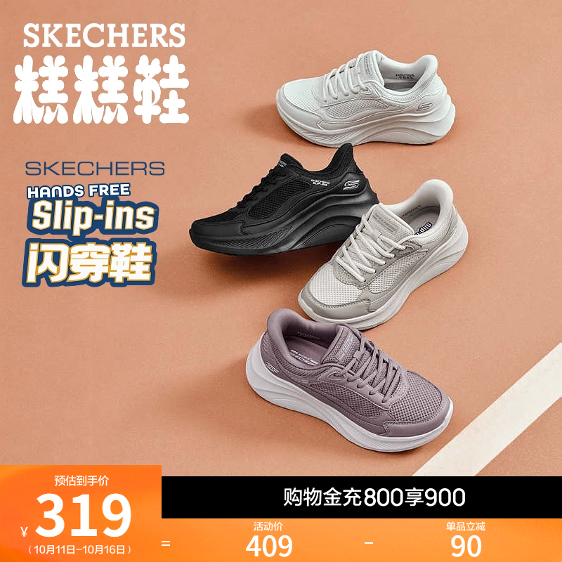 秋新款 慢跑鞋 女鞋 一脚蹬休闲运动鞋 厚底增高鞋 斯凯奇闪穿糕糕鞋
