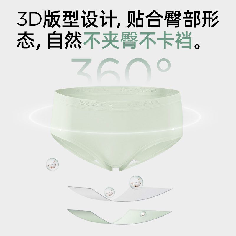 大码 无痕透气亲肤薄真丝莫代尔三角裤 女 蕉内银皮500E女士内裤 3件