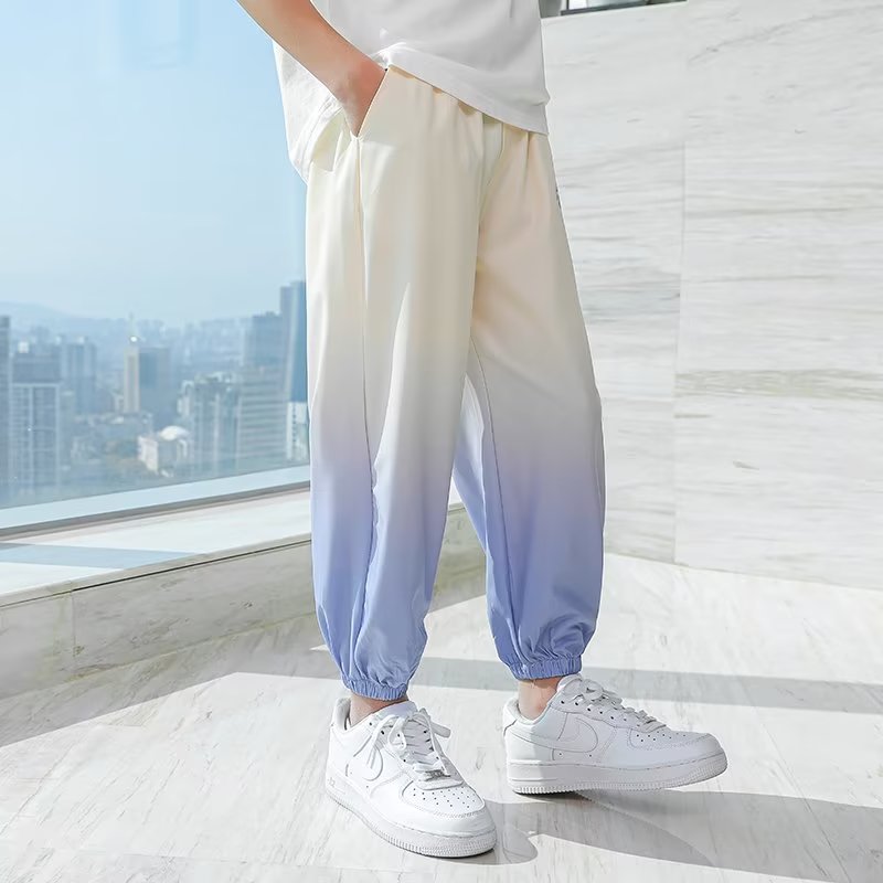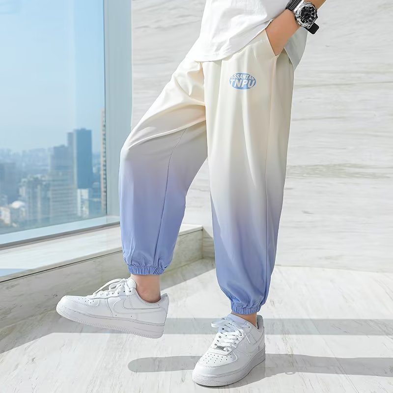 子夏季 夏装 薄款 大童运动裤 儿童冰丝速干防蚊裤 萌宝街男童渐变裤