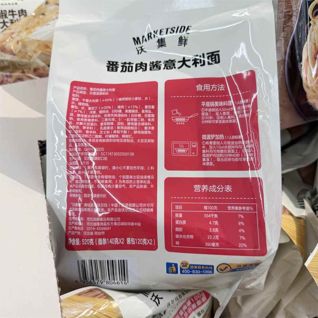 面条 代购 沃集鲜番茄肉酱黑椒牛肉意大利面袋装 上海沃尔玛商超正品
