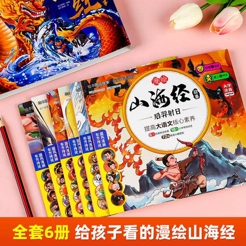 原著正版 连环画注音版 儿童绘本漫画版 山海经故事书籍珍藏版 白话文小人书一二三年级课外书睡前X 写给孩子 漫绘山海经全6册小学生版