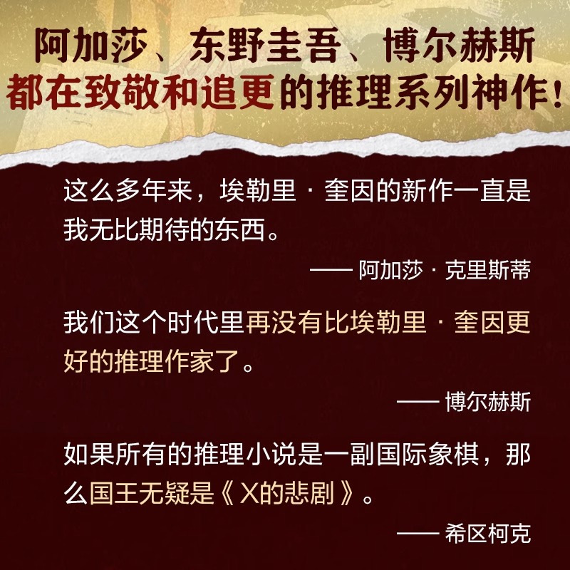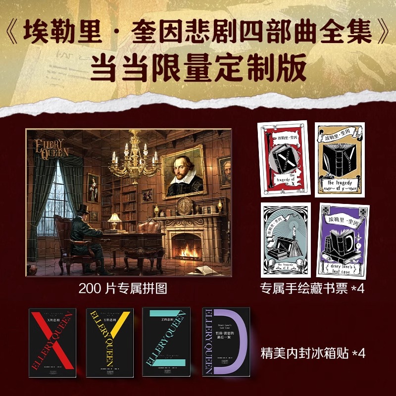 埃勒里·奎因悲剧四部曲 读客悬疑文库书籍 烫金套盒 推理神作 东野圭吾都在致敬和追更 阿加莎 正版 藏书票 冰箱贴 定制拼图