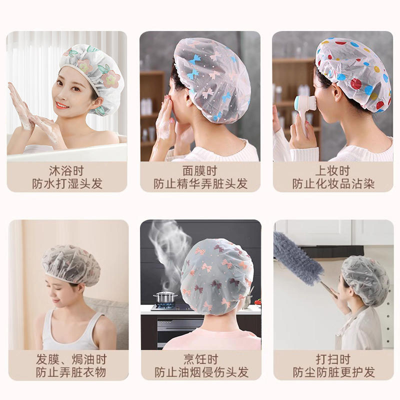 浴帽防水沐浴帽5个淋浴头套帽厨房防油烟帽子女士洗澡发膜发套养