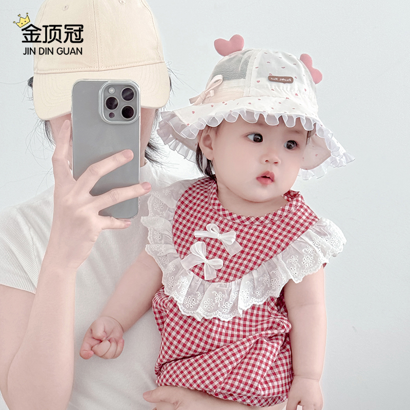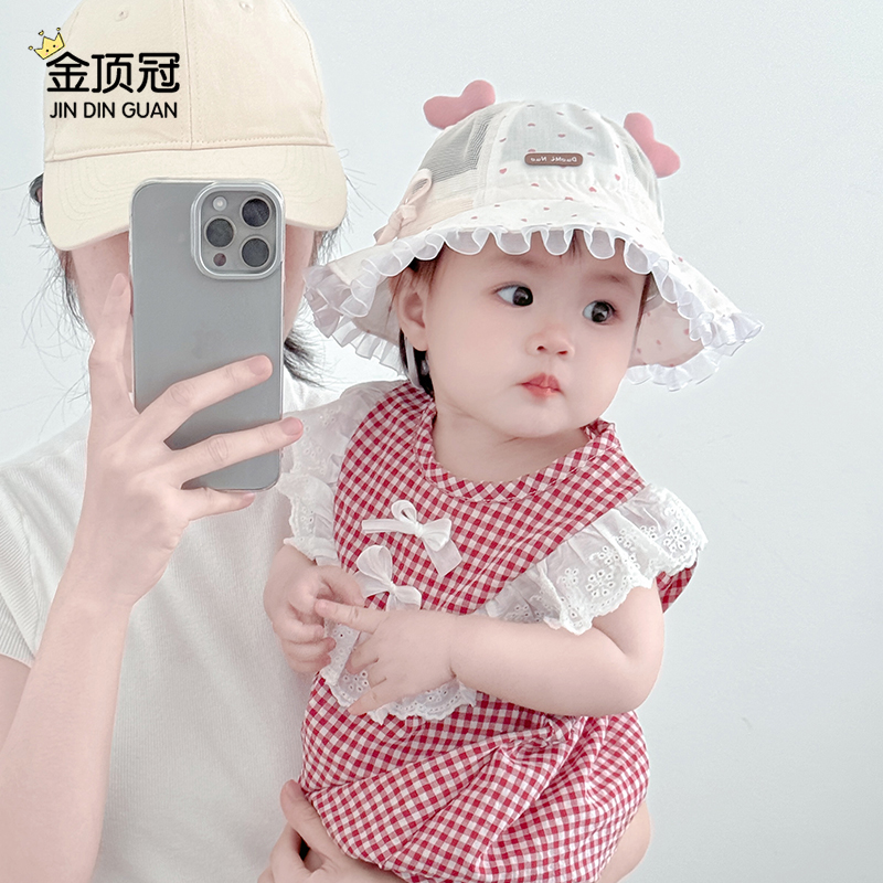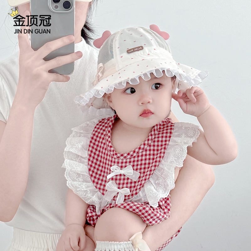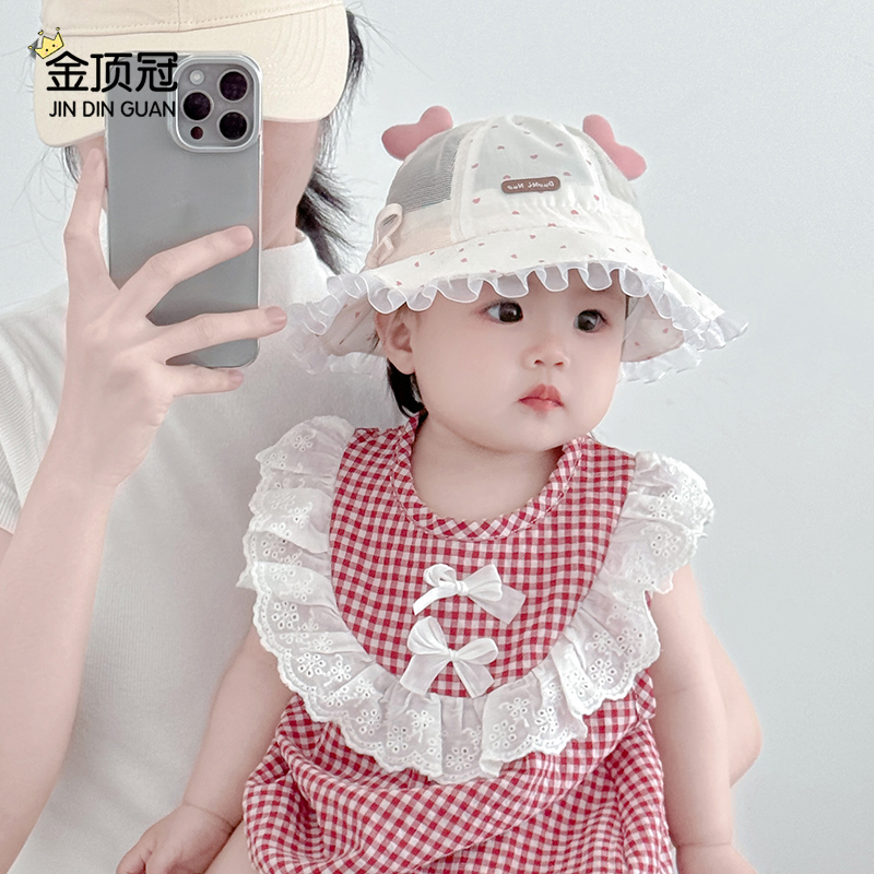 婴儿帽子夏季 渔夫帽半网甜美女宝宝防晒帽户外出游遮阳太阳帽 薄款