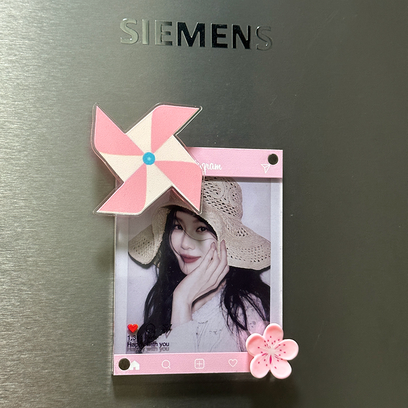 亚克力拍立得相框磁吸旅游照片墙卡片展示冰箱贴风车可转动磁性贴