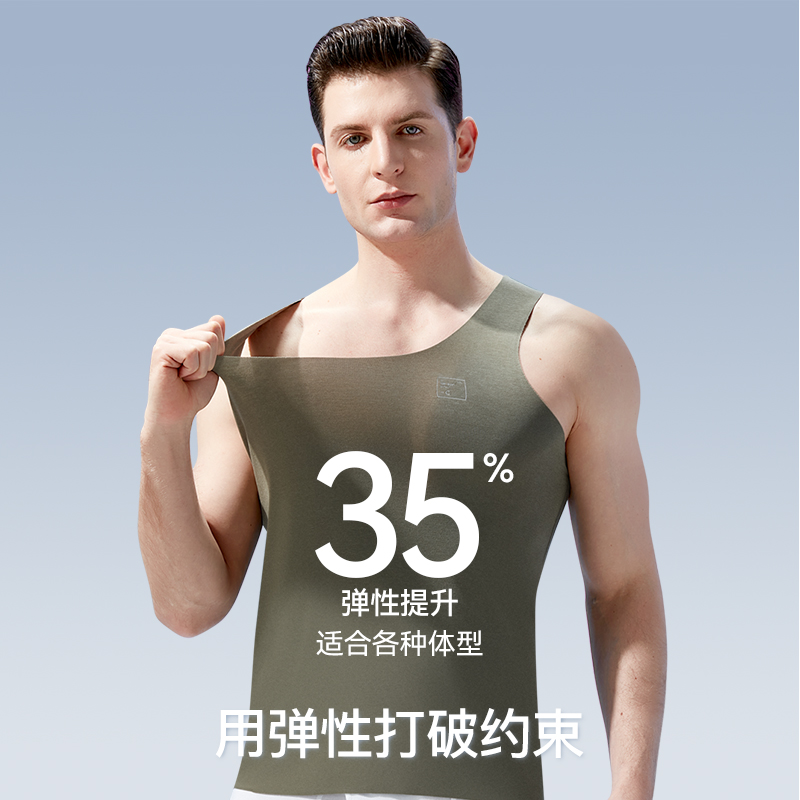 含羊绒蚕丝贴片发热秋上衣冬季 恒源祥无痕保暖背心男士 内穿打底衫