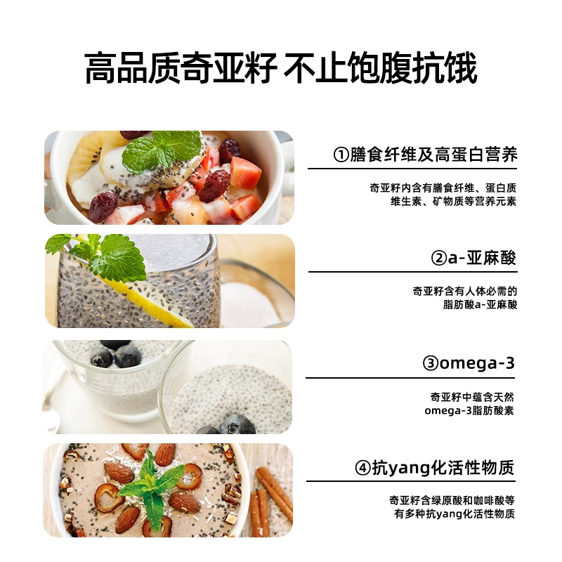 500g奇亚籽即食燕麦片代餐饱腹冲饮食用免洗小包装 墨西哥进口 罐装