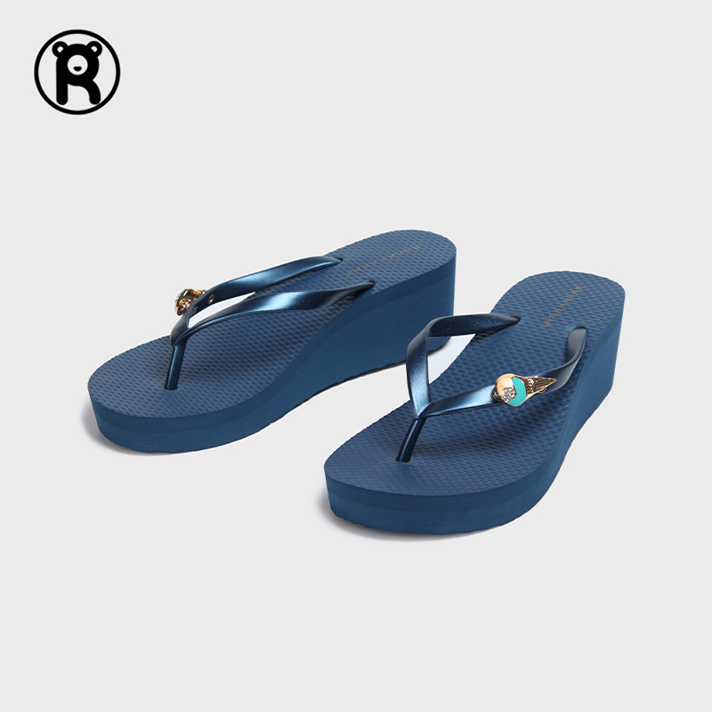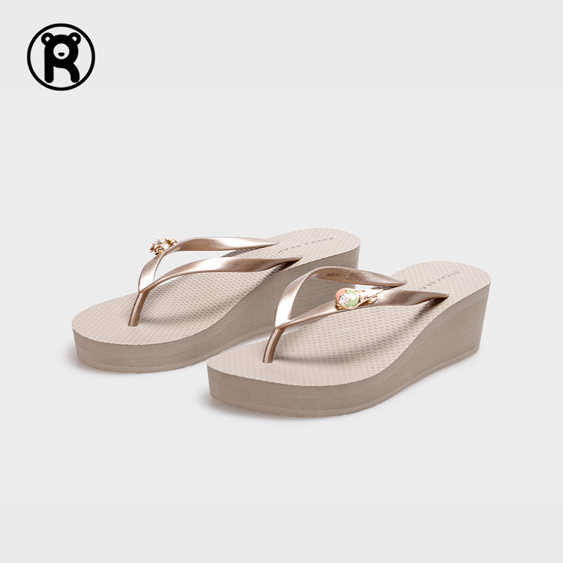 沙滩夹趾厚底人字拖夏季 洛克熊人字拖女外穿水钻时尚 防滑防臭拖鞋