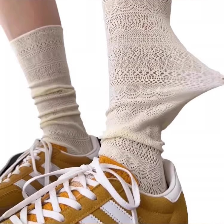 棕咖色月子长袜 乐福鞋 木耳边堆堆袜子女秋冬季 纯棉中筒袜配小皮鞋