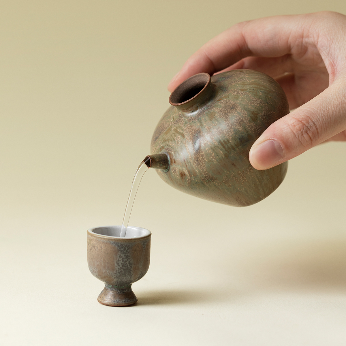 仿古粗陶一人饮酒蛊酒壶酒杯 陶艺一壶一杯小酌酒具套装 束刻 日式