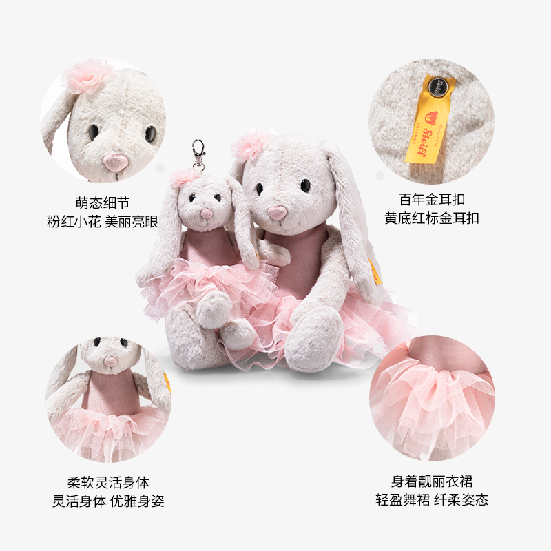 Steiff史戴芙好朋友系列芭蕾兔子哈比 毛绒包包挂件钥匙扣吊坠