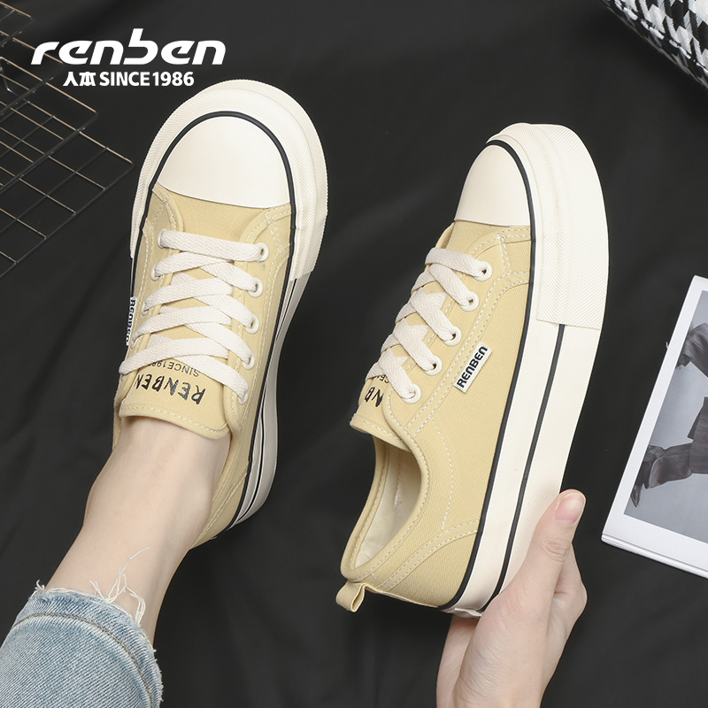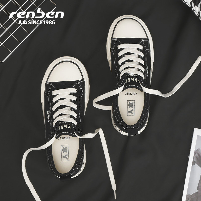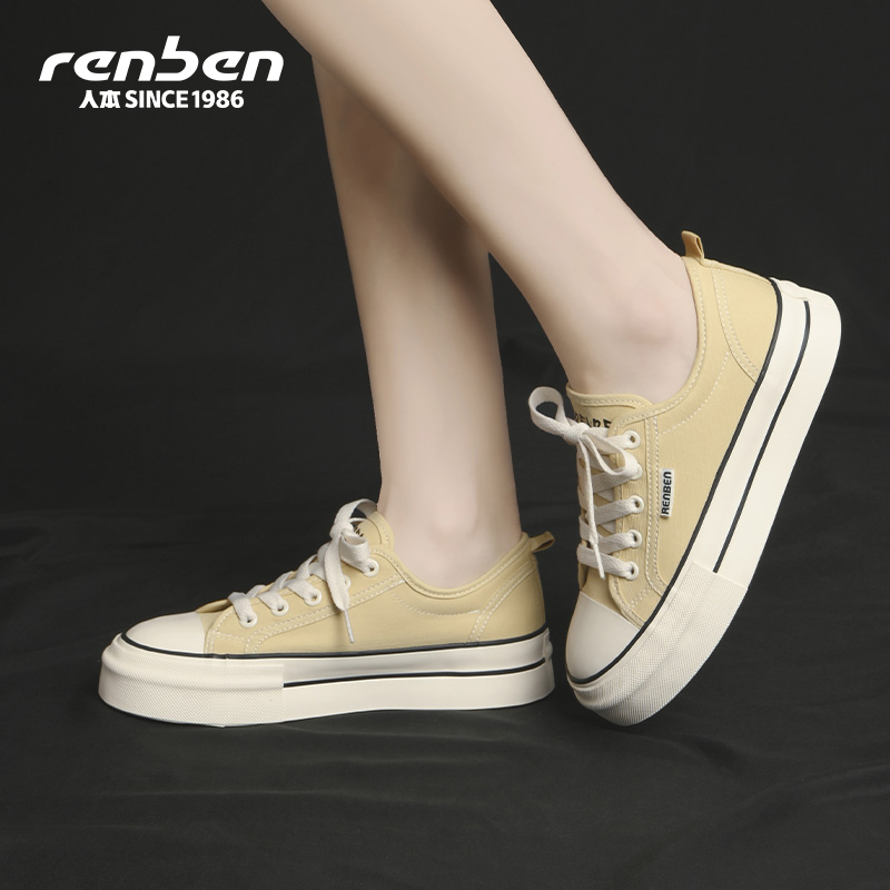 男女鞋 百搭休闲厚底小白鞋 四季 帆布鞋 子 清仓款 人本官方旗舰店正品