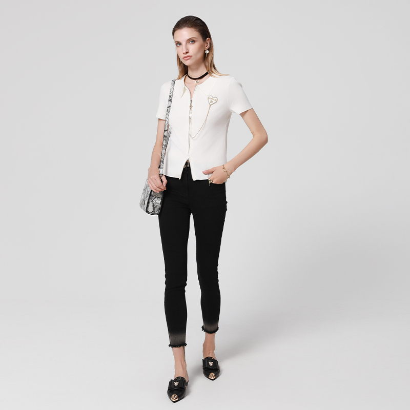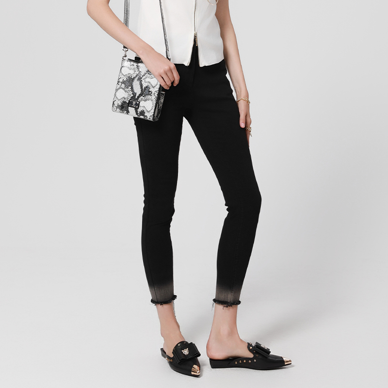 黑色棉质牛仔裤 女装 子高腰修身 毛边时尚 铅笔小脚裤 kodice春夏新款