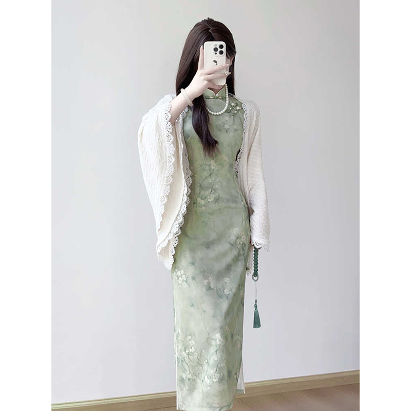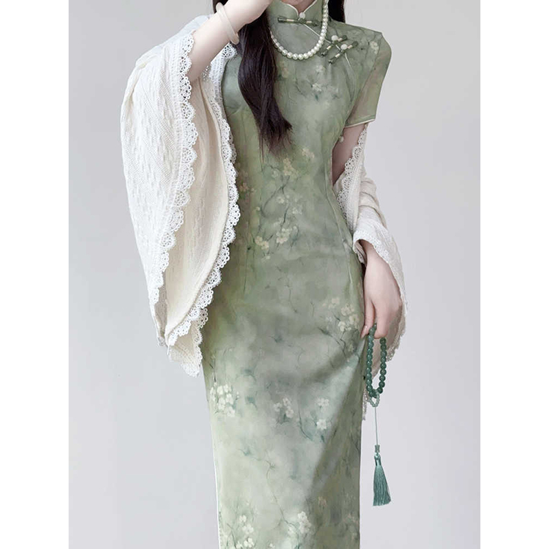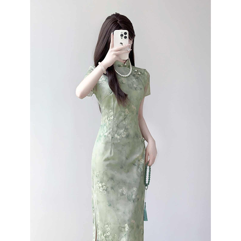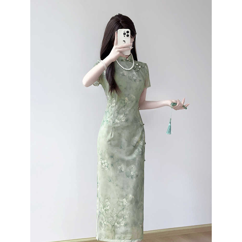 日常高级感 少女绿色连衣裙显瘦新中式 旗袍2025新款 气质高端年轻款